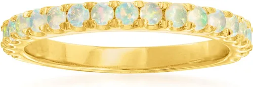 Establecida en 1952, Ross-Simons presenta estilos contemporáneos con un atractivo atemporal. Este anillo es el regalo perfecto para un cumpleaños de octubre (o cualquier cumpleaños). Las rondas de ópalo de 0.079 in son luminosas en oro amarillo pulido de 18 quilates sobre plata de ley. 1/8" de ancho. Anillo de ópalo. Información de piedra Tipo de gema 1: Ópalo Corte de piedra 1: corte bueno Color de piedra 1: Blanco Claridad de piedra 1: Blanco Forma de piedra 1: forma redonda Método de creación de piedra 1: Natural Método de tratamiento con piedras 1: impregnado Peso de la piedra 1: 0 quilates Número de piedras 1: 19