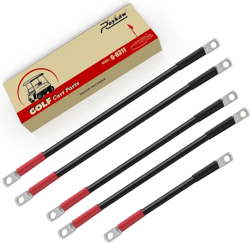 Roykaw El kit de cableado de cables de batería para carrito de golf se adapta a modelos Club Car Precedent 2008 en adelante de 48 voltios (con seis baterías de 8 V). Característica: los cables resistentes Roykaw hacen que tu batteFeatures: los cables Roykaw resistentes hacen que el rendimiento de la batería sea más eficiente, aumentando la velocidad de tu carrito de golf y prolongando la vida útil de tu carrito de golf Battery.ry rendimiento de manera más eficiente, aumentando la velocidad de tu carrito de golf y prolongando la vida útil de la batería de tu carrito de golf. Hecho de alambre de cobre puro, para aplicaciones de alto amperaje, hasta 600 voltios, buena conductividad eléctrica y térmica. Termoencogimiento forrado con pegamento 3:1 aplicado para formar un sello protector. Los enchufes de cable de cobre tienen un revestimiento estañado y utilizan un diseño cerrado para evitar la corrosión. Buena disipación de calor, resistencia al desgaste y resistencia a la oxidación. El paquete incluye: 2 cables de batería resistentes de 17.13 pulgadas, 2 piezas de 12.80 pulgadas y 1 unidad de 5.31 pulgadas.