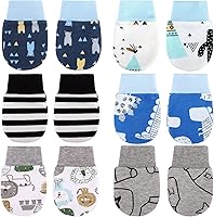 6 pares de guantes antiarañazos para bebé recién nacido, antiarañazos, unisex, de algodón, para niñas de 3 a 9 meses (serie gris, fresco)