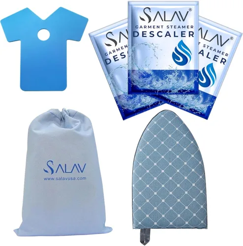Juego completo de accesorios: este paquete de SALAV incluye un guante de vapor, una mini tabla de planchar, un paquete de 3 paquetes descalcificadores y una práctica bolsa de almacenamiento, perfecta para mejorar tu experiencia de vaporización de prendas. Eliminación eficaz de depósitos minerales: los paquetes descalcificadores SALAV ayudan a eliminar acumulaciones minerales y depósitos de tu vaporizador, asegurando un rendimiento óptimo y una vida útil más larga para tu electrodoméstico. Paquetes descalcificadores fáciles de usar: para limpiar tu vaporizador, simplemente añade un paquete de descalcificador con agua destilada en el depósito de agua, ejecuta el vaporizador hasta que el agua se agote y refréscate con más agua destilada para una limpieza completa. Prácticos accesorios para vapor: el guante de vapor incluido protege tus manos del vapor caliente, mientras que la mini tabla de planchar ofrece una superficie compacta y resistente para vaporizar objetos pequeños, por lo que es fácil y eficiente vaporizar sobre la marcha. Versátil y universal: este juego está diseñado específicamente para vaporizadores de ropa profesionales y comerciales de SALAV pero también funciona perfectamente con otras marcas líderes, por lo que es una valiosa adición a tu rutina de cuidado de prendas.