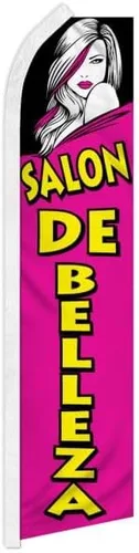 11.5 pies de alto por 2.5 pies de ancho, material duradero de punto de poliéster de Salon De Belleza, costuras duraderas y diseño vibrante brillante. Colores brillantes y vibrantes. Casi el 100% sangrado en la parte posterior de la bandera
