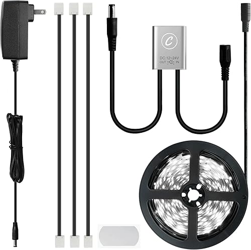 Sensky Kit de iluminación de gabinete de 19.7 pies/19.7 ft, kit de tiras de luces LED flexibles con interruptor de sensor de gabinete, adaptador