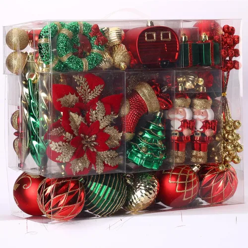 SHareconn Paquete de 135 adornos de Navidad, bolas de Navidad de plástico irrompibles para decoraciones de árbol con cuerdas para colgar para fiesta