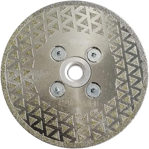 Lámina de sierra de corte de diamante electrochapada para granito y mármol, piedras naturales, diamante recubierto en ambos lados, rosca de 5/8"-11 para amoladora angular Especificación: Diámetro 4"/100MM, conexión 5/8"-11 Rosca, máquina: amoladora angular Diseñado para cortar y moler en húmedo o seco, también se utiliza para lados y bordes lisos y ásperos Ideal para mármol, piedra, fibra de vidrio, no recomendado para granito duro La tecnología galvanizada mantiene todos los granos de diamante adheridos al núcleo de acero, la alta tasa de exposición de diamante proporciona un rendimiento de trabajo de alta eficiencia