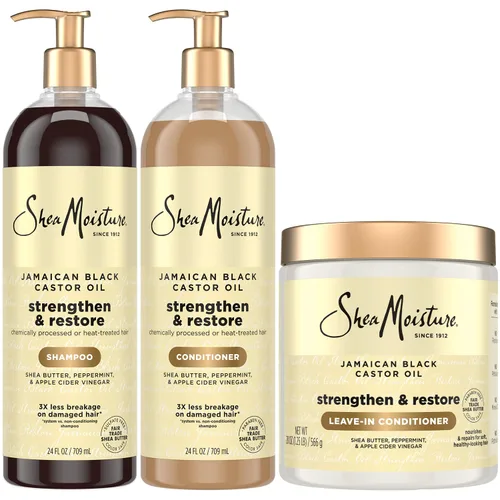 Shea Moisture - Aceite de castor negro jamaicano paquete de Combinación - Sistema de Fortalecimiento, Crecimiento & Restauración - 16.3 oz champú,