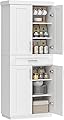 HOMCOM 72" Kitchen Pantry Cabinet, Freestanding Tall Storage Cabinet with 4 Doors, Drawer and 3 Adjustable Shelves for Dining Room, White
