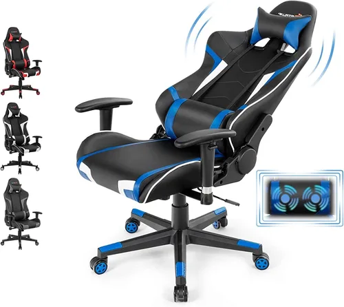 Soporte lumbar de masaje: la silla de juego adopta un cojín lumbar con masajeador eléctrico USB en el interior, que te ayuda eficazmente a aliviar la fatiga y relajar tus músculos. Y puede conectar USB a su host de computadora o banco de energía para su uso. Además, hay un bolsillo lateral debajo del asiento para que puedas colocar artículos prácticos. Experiencia cómoda al sentarse: acolchada con esponja de alta densidad, la silla de oficina de gran tamaño no es fácil de deformar y proporciona la máxima suavidad y comodidad. Mientras tanto, el respaldo alto y el asiento ancho pueden prevenir eficazmente el dolor después de estar sentado durante mucho tiempo, mientras que la piel sintética transpirable te hace sudar menos. Silla de juego ajustable: la silla de computadora puede levantar entre 19" y 23" para adaptarse bien a escritorios de diferentes alturas. Y con un respaldo ajustable que puede cambiar su ángulo de 90° a 180°, puedes encontrar una postura opcional para jugar, trabajar o tomar una siesta. Además, los reposabrazos también son ajustables para darte soporte de mano. Material duradero seleccionado: cubierto con piel sintética que es resistente al desgaste y duradero, la silla de juego se puede utilizar durante mucho tiempo. Mientras tanto, apoyada por un marco de acero resistente, la silla tiene una buena capacidad de peso de hasta 330 libras, lo que garantiza que no retrocederá cuando se sienta en el ángulo máximo. Uso versátil: equipado con 5 ruedas universales flexibles, esta silla de PC proporciona un movimiento suave y silencioso en todas las direcciones. Y con un estilo fresco, la silla de carreras añade una belleza moderna a tu espacio. Se puede utilizar no solo para juegos, sino también para oficina, sala de estar o dormitorio.