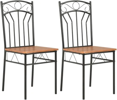 Caracterizado por un diseño elegante y un acabado de pintura suave, este juego de sillas de comedor es un icono del glamour moderno de mediados de siglo, que será una gran adición a su comedor o cocina. Nuestras sillas se pueden utilizar como sillas laterales o sillas de comedor en el comedor, sala de estar, sala de reuniones, hotel, restaurantes o cualquier otra decoración ceremonial. Además, están diseñados ergonómicamente para mayor comodidad al sentarse. La entrega incluye 2 sillas de comedor. Una elegante mezcla de comodidad y estilo, esta suave silla de ocio es la solución perfecta para cualquier espacio. La parte trasera está hecha de ratán fino transpirable para un uso duradero y fácil mantenimiento. Hechas de tablero MDF de 0.6 pulgadas y acero de alta calidad, estas sillas de estilo industrial son extremadamente estables y duraderas. Las sillas también son fáciles de limpiar gracias a su acabado de pintura suave. Estas sillas son perfectas para tu sala de estar o dormitorio, lo que te da una comodidad inmejorable y una larga durabilidad. Color: Marrón y negro. Material: MDF + marco de acero. Dimensiones: 15.7" x 18.9" x 33.9" (ancho x profundidad x alto). Grosor de la tabla del asiento: 5.9". Altura del asiento desde el suelo: 17.3". La entrega incluye 2 sillas de comedor. Ofrecemos un excelente servicio al cliente para que tu experiencia de compra en nuestra tienda sea más agradable. Sus comentarios son muy importantes para nosotros, si no está completamente satisfecho con la transacción, no dude en ponerse en contacto con nosotros antes de enviar sus comentarios, ¡gracias por su elección!