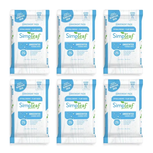 Suave y eficaz: fabricadas con materiales suaves a base de plantas e ingredientes calmantes, nuestras toallitas limpian completamente sin irritación. Seguro para pieles sensibles: nuestras toallitas están libres de productos químicos agresivos y fragancias, lo que las hace adecuadas incluso para las pieles más delicadas. Desechables y biodegradables: las toallitas Simpleaf se descomponen de forma rápida y segura, minimizando el riesgo de obstrucciones y siendo amables con el medio ambiente. Toallitas de viaje: empaquetadas para mayor comodidad, estas toallitas son salvavidas para mantenerse limpias en aviones, viajes por carretera o cualquier aventura. Toallitas corporales para niños: perfectas para dedos pegajosos, caras desordenadas o limpiar después de jugar al aire libre cuando no es necesario un baño completo.