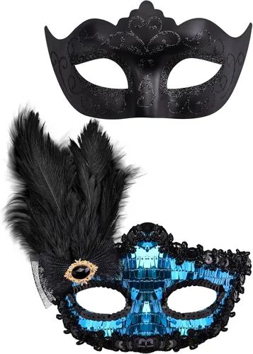 SIQUK Juego de máscaras para parejas, máscara veneciana para fiesta