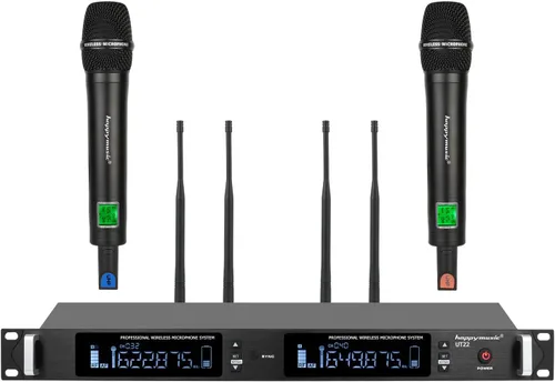 Rendimiento inalámbrico de 4 antenas: el sistema de micrófono inalámbrico UHF dual cubre un rango de frecuencia de 530-580 MHz y una respuesta de frecuencia de 50 Hz-15 kHz. El núcleo de micrófono dinámico con captación cardioide reduce de forma inteligente el ruido circundante, se concentra en las voces para un sonido vívido y de alta fidelidad. Los circuitos profesionales con doble antena proporcionan una excelente propagación de señal y recepción, lo que permite que la cobertura inalámbrica alcance un increíble máximo de 350 pies. CARACTERÍSTICA DE AUTO-SCANE: El sistema de micrófono inalámbrico UHF de karaoke está equipado con la función de escaneo automático, que puede escanear todo el entorno de RF para localizar la mejor frecuencia disponible, garantizar la menor cantidad de abandonos. Después de escanear la frecuencia, alinee la pantalla del micrófono con la tecla de sincronización del receptor para emparejarla con el micrófono. También tiene función de bloqueo para bloquear la frecuencia seleccionada. CONEXIÓN UNIVERSAL PARA MULTIDISPOSITIVO: Cada micrófono posee 100 frecuencias seleccionables, hasta 100 grupos de frecuencias pueden reducir eficazmente el problema de la interferencia de frecuencia. Soporta hasta 20 juegos para usar simultáneamente, y se puede utilizar un total de 40 micrófonos al mismo tiempo sin interferir entre sí. Con cable de audio de 0.250 in conectado para amplificador/altavoz con entrada MIC, perfecto para karaoke en casa con TV/sistema de cine en casa, cable de audio XLR (no incluido) conectado para mezclador de audio u otro equipo de audio profesional para lograr un mejor rendimiento. Construido para durar: receptor de carcasa metálica y micrófonos para una durabilidad robusta. La cubierta de malla metálica en la cabeza del micrófono protege el núcleo del micrófono de caídas. Cada micrófono requiere 2 pilas AA (no incluidas). Receptor profesional certificado FCC admite montaje en rack. Servicio posventa: todos los productos happymusic están cubiertos con 1 año de garantía del fabricante y servicio al cliente dedicado. Te invitamos a ponerte en contacto con nosotros a través del correo de Yaxa para solucionar problemas o cualquier otro problema con el producto.