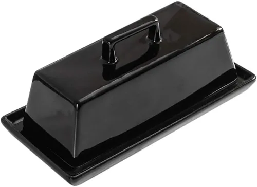 Sizikato Mantequillera de porcelana con tapa, negro puro, 7.5 pulgadas