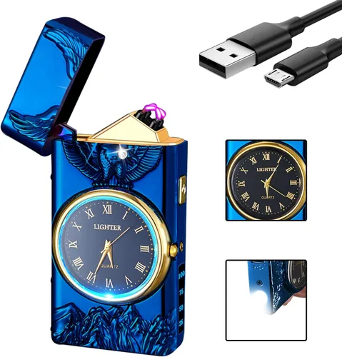 【Poderoso arco de plasma resistente al viento】Al adoptar la tecnología de plasma sin llama, puedes usarlo fácilmente en condiciones climáticas adversas. En comparación con los encendedores tradicionales, sin butano, sin llama, ecológico y reutilizable, y se puede encender rápidamente incluso en condiciones adversas como vientos fuertes o fuertes lluvias. El encendedor de metal SKRFIRE es ideal para exteriores, barbacoas y fuegos artificiales. 【Diseño Exquisito】 El exterior del encendedor vintage genial está grabado con delicado relieve, elegante reloj, iluminación led, piedra de ojo de gato azul, apariencia noble y lujosa más llamativa, iluminación inferior, sin miedo a la oscuridad. 【Control de potencia inteligente】Este encendedor eléctrico está equipado con un chip de control de potencia inteligente. Protege el encendedor de sobrecarga y descarga excesiva. La lámpara indicadora puede ayudarte a controlar el estado de la batería y cargar a tiempo. 【Regalo perfecto】Encendedor eléctrico con caja de regalo, un regalo ideal para padres, abuelos, maridos, novios y amigos. Los elegantes encendedores SKRFIRE son los mejores regalos para fiestas de cumpleaños, el Día del Padre, aniversarios, bodas, Navidad y Acción de Gracias. 🦅【Embalaje y servicio postventa profesional】Encendedor eléctrico x1, cable de carga USB x1, caja de regalo x1. Si hay algún problema, no dudes en ponerte en contacto con nosotros, nuestro equipo de servicio al cliente te proporcionará la solución perfecta.