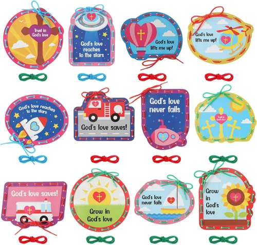 Lo que obtendrá: viene con 36 tarjetas de cordones de amor de San Valentín en 12 patrones diferentes, cada patrón tiene 3 piezas y 40 cordones coloridos en 3 colores, una buena combinación para satisfacer tus necesidades decorativas Material fiable: hecho de papel de arte de calidad, las tarjetas de costura religiosas son fiables y no son fáciles de romper, cómodas al tacto; y los cordones están hechos de poliéster de calidad, no es fácil de romper, lo que puede servirte durante mucho tiempo Tamaño adecuado: las manualidades religiosas miden aproximadamente 5.51 pulgadas, compactas y ligeras para un fácil viaje, tamaño adecuado para sostener fácilmente, y las correas miden aproximadamente 31.5 pulgadas de largo, lo suficientemente resistentes como para ser aplicadas de nuevo Diseño clásico: las manualidades de la escuela dominical tienen 12 patrones diferentes, incluyendo naves espaciales, veleros, cruces, ambulancias, etc., colores brillantes y diseños lindos, que llamarán tu atención y harán que tu juego educativo sea más interesante Regalos divertidos: estas manualidades cristianas se pueden aplicar como un juego interesante para niños en casa, un proyecto de manualidades de bricolaje para profesores en clase, una hermosa e interesante decoración de la casa, haciendo que tu habitación sea más hermosa