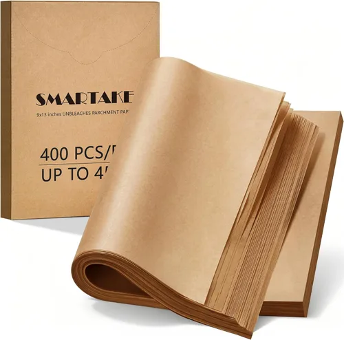 SMARTAKE 400 hojas de papel pergamino para hornear, 9 x 13 pulgadas, antiadherente, precortado, para hornear, asar a la parrilla, freidora de aire,