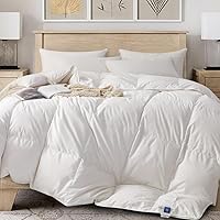 Edredón de plumas tamaño Queen. El edredón de plumas tamaño Queen mide 90 x 90 pulgadas. Fabricado con materias primas de alta calidad, es suave, esponjoso y silencioso, ofreciéndote calidez durante toda la noche. Relleno con mezcla de plumón y plumas. Nuestro edredón está relleno de 75% plumón y 25% plumas. El relleno de plumón y plumas de 46 onzas hace que este edredón sea cálido y esponjoso, ayuda a crear un ambiente acogedor y cómodo para dormir. Tela de alta calidad a prueba de plumas. Para que nuestro edredón sea más práctico, aplicamos cierto tipo de material compuesto como tela de cubierta: 82% poliéster y 18% algodón. Es por esto que nuestro edredón es suave, duradero y fácil de cuidar. No tienes que preocuparte de que se rompa o se decolore fácilmente. Artesanía experta: La estructura de cuadrícula 3D acolchada ayuda a distribuir el relleno uniformemente y mantenerlo en su lugar. La cubierta de tejido denso y las costuras dobles evitan que el relleno se salga. Extra cálido para clima frío Relleno de plumón y plumas de 46 onzas, este edredón es esponjoso y cálido, especialmente adecuado para climas fríos, como el invierno. Con el relleno firmemente sostenido en la cuadrícula, puede darte la máxima calidez y ayudarte a dormir maravillosamente.