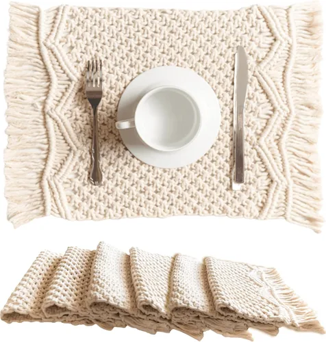 Pregunta sugerida sobre SnugLife Juego de 6 manteles individuales de macramé, hechos a mano, tejidos de algodón, bohemios, modernos manteles individuales con flecos ¿Qué incluye exactamente este set?