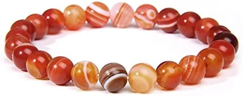 SofiaCreations Handmade Red Banded Agate Crystal Beaded Bracelet, Natural Carnelian Gemstone Crystal 8mm Round Beads Stretchy Bracelet, Healing