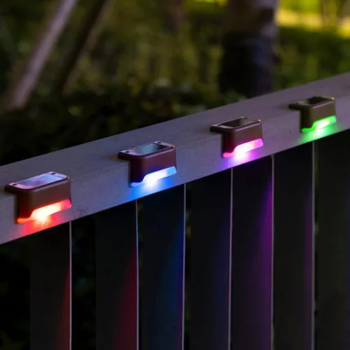 【2022 Updated Deck Light】2022 New outdoor solar deck lights package includes 4 constant light' colors (Red, Green, Blue, Purple), each has 4 lights, which is suitable for daily lighting and decoration. Creates a nice ambience for your backyard, patio, stair, deck, fence, garden, porch, pathway, etc. 【Automatic Work Mode】The solar step light has no switch, just pull out the insulator tab to use. On sunny days, it takes only 4-5 hours to be fully charged. It can turn on automatically at dusk and turn off at dawn. 【Weather Resistant】With hard ABS shell and high quality solar panel, the solar stairway light is designed to withstand rain, wind, or small snowy days. 【Easy Installation】The deck lights solar powered can be installed in anywhere that can be fixed with screws. The size is suit for the deck, no worry about tripping. 【Customer Service & Warranty】If you have any questions regarding to the solar yard lights, please reach out to our customer service staff, we will be happy to assist you within 24 hours; For Warranty, we promise a 60-Days Money Back if you are not satisfied with the solar lights.