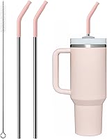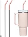 Metal Straw with Silicone Tip for 40oz Stanley Cup, 2 Pcs Stainless Steel Straws Replacement for Stanley 40 oz Adventure Quencher Travel Tumbler