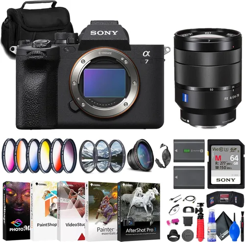 Los artículos del paquete incluyen: 1 x cámara sin espejo Sony a7 IV, 1 x Sony Vario-Tessar FE 0.945-2.756 in f/4 ZA OSS Lens, 1 x tarjeta de memoria Sony 64GB UHS-II SDXC, 1 x Kit de filtro de 3 piezas, 1 x lente gran angular, 1 x kit de filtro de color graduado, 1 x capucha de lente tulipán, 1 x bolsa suave, 1 x x NP-F Batería Z100, 1 x lector de tarjetas de memoria, 1 x Corel Photo Software con PhotoMirage, AfterShot, Painter Essentials, PaintShop Pro y estudio de video, 1 x trípode, 1 x correa de mano, 1 x cartera para tarjeta de memoria, 1 x protector de tapa de lente y más… Un todoterreno que va más allá de lo básico, el Sony a7 IV cumple una doble función con imágenes fijas fuertes y rendimiento de video. Una cámara híbrida sin espejo avanzada, la a7 IV tiene la resolución y el rendimiento AF que atraen a los fotógrafos junto con una robusta grabación de video 4K 60p para cineastas y creadores de contenido. El sensor de fotograma completo Exmor R de 33 MP recientemente desarrollado cuenta con un diseño retroiluminado que promueve alta claridad, bajo nivel de ruido y reproducción de colores vivos. Este diseño se beneficia de trabajar en condiciones de poca luz y funciona en conjunto con un amplio rango de sensibilidad de ISO 100-51200. El diseño del sensor también logra un impresionante rango dinámico de aproximadamente 15 paradas y los archivos se pueden grabar en formato RAW, JPEG o HEIF de 10 bits. Usando el motor BIONZ XR de clase insignia, las capacidades de procesamiento de imágenes de alta velocidad están disponibles para disparos continuos rápidos, grabación de video 4K y rendimiento avanzado de seguimiento AF. El procesamiento rápido también ayuda a reducir el obturador y otras distorsiones de movimiento para una representación limpia de los sujetos en movimiento. En términos de velocidades de disparo, el sensor y el procesador permiten disparar hasta 10 fps, utilizando el obturador mecánico o electrónico y con AF/AE habilitado. Características principales: Sensor CMOS Exmor R de fotograma completo de 33 MP - Disparo de hasta 10 fps, ISO 100-51200 - Video 4K 60p en 10 bits, S-Cinetone - EVF de 12.1 ft-Dot con frecuencia de actualización de 120 fps - Pantalla táctil LCD de ángulo variable de 3" 3.4 ft - 759-Pt. AF híbrido rápido, AF ocular en tiempo real - Compensación de respiración de enfoque - Estabilización de imagen SteadyShot de 5 ejes - Aspecto creativo y efecto de piel suave - Transmisión 4K 15p UVC/UAC a través de USB tipo C