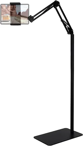 Amplia compatibilidad: nuestro soporte es compatible con todos los teléfonos y tabletas de 4.7-11 pulgadas que pesan menos de 1.5 libras. (Consulte la sección de dispositivos compatibles anterior, y si está utilizando una tableta grande o una con un estuche, le recomendamos agregar algo de peso a la base para mayor estabilidad) Libera tus manos: Ya sea que estés de pie, sentado o acostado, este soporte de piso para tableta te ayuda a encontrar el mejor ángulo de visualización para ver películas, transmisión en vivo, Tiktok, videos, jugar juegos o leer partituras mientras practicas guitarra o piano. También puede ayudarte a tomar fotos Material de alta calidad: acero al carbono y base reforzada garantizan una vida útil más larga (mantén tu brazo en la misma dirección que la base cuando se usa, de lo contrario el peso pesará la base) Amplio alcance de uso: cuando estás acostado en la cama, bañándote, cocinando, jugando música, entrenando en la cinta de correr, jugar juegos de interruptor o siguiendo videos de entrenamiento, puedes usar este soporte de piso para tableta para leer o ver. También se puede utilizar para tomar fotos, videoconferencias, lecciones en línea, transmisiones en vivo de TikTok, grabaciones de cámara aérea, etc Soporte de piso flexible: este soporte puede extender sus brazos, la altura se puede ajustar en el rango de 27.5-55 pulgadas, el soporte se puede girar 360 grados para cambiar cualquier ángulo de visión, fácil de usar en la cama, reclinable, mesa. Si es necesario, también puede cambiar la posición de un resorte superior y un resorte inferior para que la tableta sea más estable Fácil de instalar y buen servicio al cliente: no se necesitan herramientas, siga los pasos en el manual de instalación, puede instalar o desmontar fácilmente el soporte, conveniente para transportar y ahorrar espacio. Si tienes algún problema, cualquier daño al producto, mal equilibrio, o no te gusta, puedes ponerte en contacto con el tratamiento posventa, nos ocuparemos de tu problema en el menor tiempo