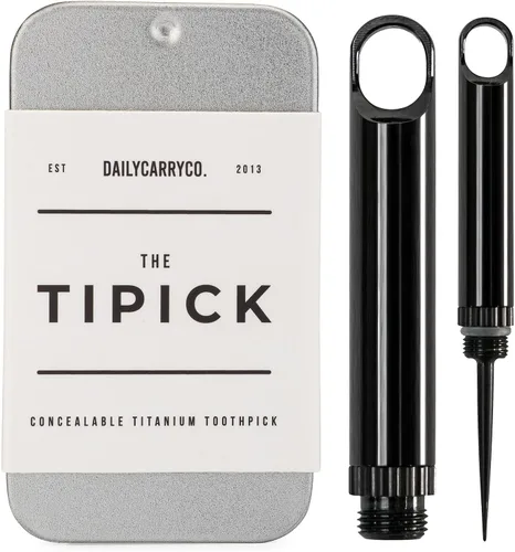 DAILYCARRYCO. Soporte para palillos de dientes de titanio TiPick - Portátil de metal para viajes - Palillo mondadientes reutilizable EDC micro -