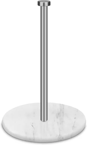 Soporte para toallas de papel para encimera con base de mármol blanco ponderado de 7 pulgadas, soporte moderno de pie para rollo de papel, acabado