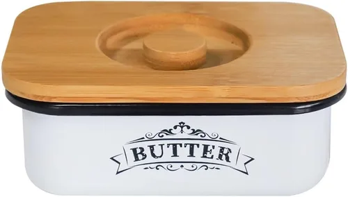 SOTECH Mantequillera con Tapa Estilo Granja Tarro de Mantequilla para Encimera Caja de Metal Pequeña y Cubierta de Bambú más Gruesa Mantequillera