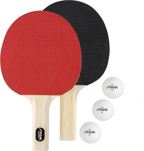 STIGA Desde 1944, STIGA ha sido el líder innovador en equipos de tenis de mesa. STIGA combina artesanía superior con un rendimiento excepcional en cada producto. Equipo de la más alta calidad para todos, desde aficionados hasta profesionales. Esa es la herencia STIGA Incluye: juego de tenis de mesa aprobado por la USATT que incluye dos raquetas hardbat y 3 pelotas blancas de 1 estrella ITTF de tamaño reglamentario (1.575 pulgadas) hechas de materiales resistentes que mantendrán a tu familia jugando durante años Perfecto para principiantes: creado para principiantes que buscan desarrollar sus habilidades de tenis de mesa Diseño de raqueta: una raqueta de tenis de mesa resistente con un mango recto, hoja de 5 capas y goma de pips cortos CLASIFICACIONES DE RENDIMIENTO - Velocidad: 24, Giro: 28, Control: 48