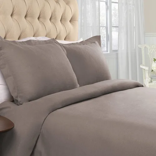 ***Impressions ahora es la marca Superior *** Ropa de cama de lujo asequible Dale a tu cama un aspecto elegante y una nueva capa moderna de comodidad con este juego de funda de edredón de franela 100% algodón. La franela es acogedora y cálida en invierno y es igualmente cómoda en verano, gracias a la construcción de algodón transpirable. La tela de franela es más resistente a las arrugas que los tejidos de algodón estándar, y está cepillada en ambos lados para transformar tu cama en un refugio maravillosamente acogedor. Disponible en una variedad de tamaños y en patrones sólidos y de cachemira, estos juegos de cama de franela son perfectos para dar un aspecto elegante a tu dormitorio. Las fundas de edredón están cerradas con botones transparentes y ocultos, y las fundas de almohada incluidas tienen un cierre de sobre para una apariencia ordenada. Una versátil paleta de colores de gris, marfil, azul claro, azul marino, calabaza y morado es una gran manera de actualizar tu decoración. La textura lujosa perfecta y los colores ricos se combinan maravillosamente para complementar el interior de tu dormitorio. Añade juegos de sábanas a juego y fundas de almohada adicionales, o mezcla y combina sólido y cachemira para un aspecto fantástico y coordinado. Este hermoso juego de funda de edredón es lavable a máquina, no destiñe y se usa extremadamente bien. Para secar, secar en secadora a baja temperatura y sacar rápidamente de la secadora. Siempre siga las instrucciones de la etiqueta de cuidado para obtener los mejores Patrimonio Llevamos más de 40 años fabricando ropa de cama fina. Hacemos de todo, desde sábanas, edredones, fundas de almohada y faldas de cama, hasta toallas y batas de baño, hasta edredones y cubrecolchones, e incluso alfombras. Nuestra amplia gama de colores, patrones y precios garantiza que cada uno de nuestros clientes pueda encontrar algo que les encantará. Somos expertos en la fabricación de textiles de alta calidad y nos enorgullecemos de producir solo los mejores productos. Vea lo que nuestros clientes tienen que decir: "¡Me encanta! Se siente genial: color encantador, ¡se adapta bien!" "Estas fundas de edredón de franela son increíbles. ¡Cálido y suave!" "Increíble conjunto! ¡Exactamente lo que estaba buscando! No puedo esperar a la cama todas las noches" "Gran juego de edredón. Hace que mi cama sea muy cálida… Definitivamente compraré más" "Muy bonito y la calidad es muy buena! ¡Muy cálido con mi edredón adentro!" "¡Perfecto! Muy cálido y cómodo =)" ¡Y pruébalos por ti mismo!