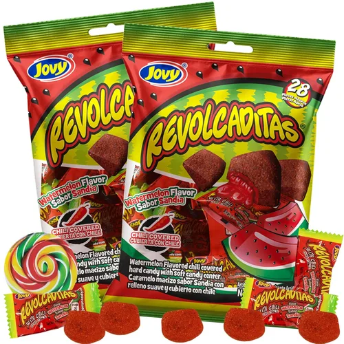 CANDIES DUROS MEXICANOS cubiertos de chile en polvo con un centro de caramelo suave. Dulces y picantes dulces envueltos individualmente! Viene con 2 bolsas Revolvcaditas de sandía de 6 onzas CONFIANZA Sweetzo compra solo a fabricantes con licencia. Combinamos dulces complementarios para el regalo perfecto. Reempaquetamos todos los artículos en nuestro embalaje personalizado para garantizar la llegada en perfectas condiciones de aperitivos. ¡DULCE Y PICANTE! Disfruta de estos deliciosos caramelos duros y mira si puedes manejar el calor o si crees que es dulce Envuelto individualmente y listo para compartir con amigos, familiares o compañeros de trabajo GRANDES rellenos de bolsas de golosinas o dulces de piñata
