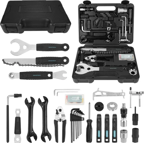 Swiss+Tech Kit de herramientas de reparación de bicicletas de 30 piezas, juego de herramientas de mantenimiento de bicicletas con estuche