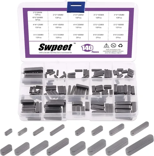 Swpeet 140 piezas de 16 tamaños de acero al carbono de 0.118 in, 0.157 in, 0.197 in, 0.236 in, llave de pluma de punta redonda, juego de llaves para eje de transmisión paralelo, surtido de llaves para la industria mecánica de sujetadores ¿Por qué elegirnos? 1. Buena selección, un surtido perfecto de piezas necesarias. Hemos preparado 16 tamaños para satisfacer varias necesidades y requisitos para ti. 140 piezas son lo suficientemente grandes como para mantenerte en marcha durante meses o incluso años. No tienes que ir a una ferretería, te ayudará a ahorrar mucho tiempo y energía. 2. Material de alta calidad. Nuestras llaves están hechas de acero inoxidable de alta calidad para un uso estable y duradero. Exquisita artesanía, superficie lisa. 3. Kit muy práctico para tener a mano. Solo se necesita una sola llave para instalar un nuevo adaptador y rueda en el timón de su proyecto. Pero, al precio que iba a este juego, tenía sentido comprarlo y tenerlo en la casa para un uso potencial futuro. Tenía el tamaño exacto de la llave Woodruff que necesitabas. 4. El mejor regalo. Puedes regalar este hermoso producto a tus seres queridos y amigos, les encantará. Especificaciones: Color: como se muestra en la imagen. Material: acero al carbono de alta calidad. CANTIDAD: 140 unidades. El paquete incluye: 10 unidades-------- 0.118x0.118x0.315 in 10 unidades-------- 0.118x0.118x0.394 in 10 unidades-------- 0.118x0.118x0.472 in 10 unidades-------- 0.118x0.118x0.630 in 10 unidades-------- 0.157x0.157x0.394 in 10 unidades-------- 0.157x0.157x0.472 in 10 unidades-------- 0.157x0.157x0.630 in 10 unidades-------- 0.157x0.157x0.787 in 10 unidades-------- 0.197x0.197x0.472 in 10 unidades-------- 0.197x0.197x0.630 in 10 unidades-------- 0.197x0.197x0.787 in 10 unidades-------- 0.197x0.197x0.984 in 5 unidades-------- 0.236 x 0.630 5 unidades-------- 0.23 x 0.78 x 05 unidades-------- 0.23 x 0.8 x 0.5 unidades-------- 0.236 x 0.236 x 1.181 in. Intotal 140 unidades.