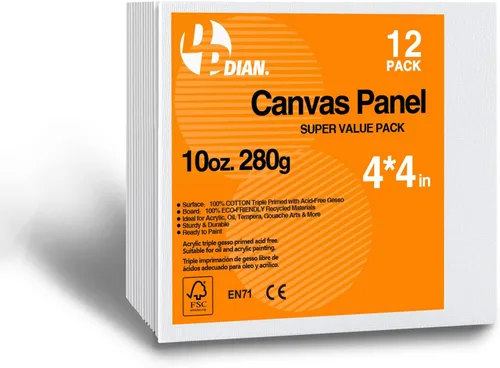 Lienzo 100% algodón para pintar: Hecho de lienzo de algodón 100% puro, el lienzo de pintura cuenta con una intensidad de color superior y una textura excepcional, reteniendo eficazmente los pigmentos mientras preserva los tonos naturales y el brillo de las pinturas Imprimado y listo para pintar: el lienzo a granel está triple imprimado con gesso blanco acrílico no tóxico, sin ácidos. Los lienzos en blanco para pintar mantienen una superficie imprimada, lista para pintar, dibujar e ilustrar, sin desmoronarse ni agrietarse. Puede comenzar su creación artística inmediatamente después de retirar el embalaje Paquete económico de lienzo de 4 x 4: viene con 12 lienzos de 4 x 4, tendrás la base perfecta para crear obras maestras texturizadas que están listas para exhibir en tu hogar. Ya sea que estés trabajando en pequeños detalles o composiciones más grandes, estos lienzos de pintura proporcionan infinitas posibilidades para tu viaje de visión artística Tablero de lona de usos versátiles: estos paneles de lona de alta calidad son adecuados para acrílicos, óleos, acuarelas, gouache, etc., y este lienzo de pintura para niños y adultos está listo para cualquier proyecto, ya sea tarea escolar, clases de arte, decoración del hogar o fiesta de pintura en lienzo Atención al cliente: el lienzo en blanco de DPDIAN se inspecciona estrictamente antes del envío. Si tienes alguna pregunta, no dudes en ponerte en contacto con nosotros a través de Amazon. Te responderemos y te ayudaremos a resolver el problema en 24 horas Aviso: Esto no es lienzos estirados