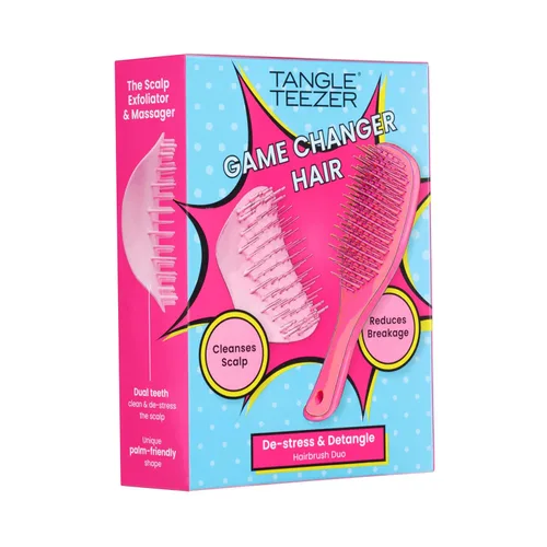 Kit de cuidado del cabello y el cuero cabelludo: incluye el mini cepillo desenredante Tangle Teezer y el innovador exfoliante y masajeador del cuero cabelludo, tu rutina todo en uno para hebras suaves y un cuero cabelludo equilibrado Suave desenredante: ideal para tipos de cabello liso a ondulado, este cepillo desenreda fácilmente el cabello húmedo o seco, por lo que es perfecto para el peinado diario sin tirones ni dolor Diseño innovador: el mini cepillo de pelo cuenta con dientes largos y flexibles que se deslizan a través de nudos sin tirones y dientes más cortos que suavizan la cutícula, reduciendo la rotura y dejando el cabello brillante y libre de encrespamiento Exfoliación y masaje del cuero cabelludo: el cepillo de doble diente para el cuero cabelludo refresca el cuero cabelludo eliminando la acumulación de productos y las impurezas mientras aumenta la circulación con un efecto de masaje relajante, ideal para usar con champú o tratamientos en la ducha Diseño apto para la ducha: el mango alado único del cepillo para cuero cabelludo se adapta a todos los tamaños de mano y no se desliza cuando está mojado, mientras que el cepillo de tamaño de viaje es fácil de sostener y usar en casa o en movimiento