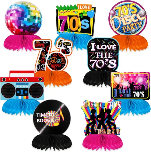 TaoBary 9 piezas de centros de mesa de fiesta de discoteca de los años 70, palos de los años 70, decoración de disco de nido de abeja retro,
