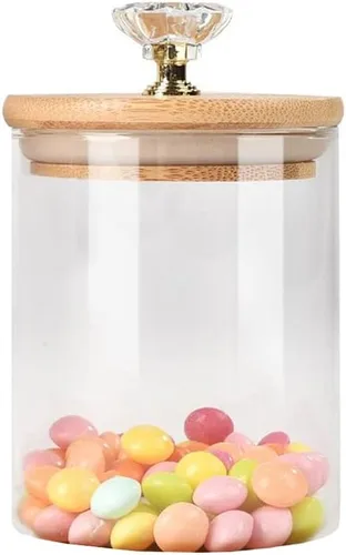 Material: vidrio sin plomo/madera, seguridad alimentaria Diámetro: 3.2 pulgadas, Altura: 4 pulgadas El frasco se puede utilizar para almacenar galletas, dulces o se puede utilizar como una pieza decorativa. Es un gran regalo de anfitriona. Ideal como regalo de inauguración de la casa o de boda, o como detalles decorativos para bodas y otros eventos. Cantidad: 1pcs