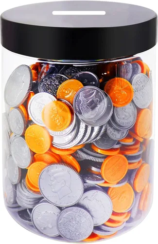 ️Tarro de monedas transparente: el frasco grande está hecho de plástico PET duradero, irrompible y seguro para alimentos. La alcancía de plástico transparente se compara con las alcancías de vidrio o cerámica, nuestro tarro de monedas de plástico es más seguro y ligero que los frascos de vidrio. El aspecto altamente transparente te permite ver claramente el saldo del depósito dentro del tarro de dinero grande. ️Tarro de dinero de plástico universal: el tarro de punta de plástico de boca ancha es muy conveniente para monedas o uso promocional. Capacidad: Capacidad: 2 cuartos de galón = 1/2 galón = 8 tazas = 64 onzas líquidas. El tarro de plástico transparente de alcancía puede almacenar alrededor de 1.300 monedas a plena capacidad. El Big Money Bank puede contener todas las monedas estadounidenses, incluyendo centavos, níqueles, monedas de diez centavos, cuartos, medio dólar y monedas de dólar. ️Múltiples usos: el tarro de dinero transparente es ideal para niños, adolescentes y adultos, organizadores de cambio de frascos, tarros de propinas para dinero, enseñanza de matemáticas, tarro de donación para recaudar fondos, tarro de cambio transparente familiar, botellas de deseos, botella de almacenamiento para arte, manualidades, decoración, recuerdos de fiesta y más. ️Frasco de cambio grande de boca ancha: la tapa de rosca fácil de poner y quitar es buena para verter y vaciar el contenido. Al mismo tiempo, también damos calcomanías de "consejos son apreciados" que puedes pegar en el gran banco de cambios. Gran regalo para todas las edades: a los niños les encantará ver crecer sus ahorros y los adultos valorarán tener un lugar de aterrizaje para cambiar el contador de monedas. Este gran banco de monedas de plástico será un regalo único para niños