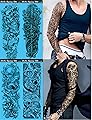 DaLin - 4 hojas extragrandes de tatuajes temporales de brazo completo para mujeres, tatuajes para hombres, adultos, pesadilla antes de Navidad,
