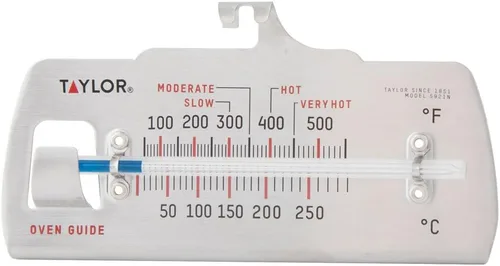 Mantenga los hornos horneados y asados con precisión utilizando este termómetro duradero y preciso. Cuelgue el termómetro en el horno o párese para leer mientras el horno está encendido. Mide 100 a 600 grados Fahrenheit, este termómetro cuenta con una cara grande con referencias de guía de zona fáciles de leer. Este termómetro está construido con acero inoxidable duradero y resistente y un termómetro sin mercurio para una limpieza fácil y segura a mano o en el lavavajillas. Listado por la NSF, este termómetro es higiénico y seguro para operar en el horno.