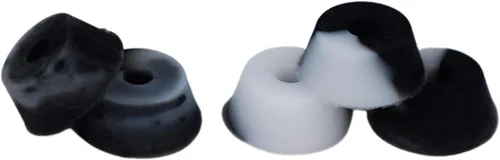 DUROMETRO 71A || Bujes de burbujas en blanco y negro con una clasificación de dureza 71A que proporcionan un paseo medio. Compatible con todas las principales marcas de camiones de diapasón (incluyendo camiones kingpin más anchos como Dynamic y Y-Truck) Estanqueidad media || Ideal para aquellos que prefieren una sensación más apretada que permita un movimiento y trucos más nítidos. Proporciona una cantidad moderada de movimiento y alcance del camión Moldeado a medida || Moldeado a medida un material de silicona ultra premium con una forma consistente y colocación de agujeros en cada casquillo Forma única: con su forma única y múltiples niveles de firmeza, la serie Pro Duro de Teak Tuning ofrece el nivel más prolífico de personalización de cualquier afinación del diapasón del mercado Diseñado profesionalmente: modelado según la afinación de patineta en forma cónica con el diapasón en mente, los bujes soportan un desgaste significativo