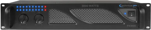 3000 WATTS POWER: La serie TPX3000T de Technical Pro, es un conjunto de amplificadores de alta potencia. Esta unidad le dará la salida de sonido que necesita en clubes, escenarios y estudios abarrotados. Se puede conectar a cualquier estudio estándar o rack móvil con facilidad MODOS DE ENTRADA Y SALIDA MÚLTIPLES: Entradas: RCA, 1/4, Salidas: Banana binding post, Speak on - Medidor LED azul iridiscente - Indicadores de potencia, nivel y recorte por canal AMPLIFICADOR DE 2 CANALES: Este amplificador de potencia de 2 canales de Technical Pro es un amplificador de primera categoría ideal para grabar música, practicar y escuchar. CARACTERÍSTICAS INTEGRADAS: Con las capacidades incluidas, el TPX3000T está listo para tomar audio de una variedad de fuentes. El TPX3000T toma la entrada de RCA, memorias USB y tarjetas SD. Ventilador refrigerado: Este amplificador técnico Pro tiene ventiladores de velocidad de enfriamiento dual con estabilizador de potencia integrado.