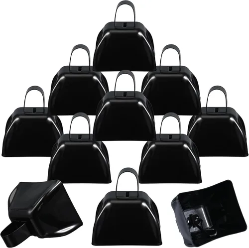 Sonido fuerte y claro: la campana de vaca de metal ofrece un sonido fuerte y claro, asegurando que puedas localizar fácilmente tus vacas u otros animales de granja incluso desde una distancia; con su potente proyección de sonido, estas campanas de vaca proporcionan comodidad y tranquilidad Resistente y fiable: fabricado con metal de calidad, este cencerro está construido para durar; su construcción resistente garantiza que pueda soportar un manejo áspero y condiciones climáticas adversas, lo que hace que el cencerro sea adecuado para uso al aire libre a largo plazo Fácil de usar: los fabricantes de ruido para eventos deportivos vienen con un práctico mango, lo que permite una fácil fijación a los collares o arneses de tus animales; puedes colgarlos sin esfuerzo en los lugares que necesites, asegurando que su sonido siempre se escuche fácilmente Versátil y multiusos: estos fabricantes de ruido no solo se limitan al uso agrícola; también se pueden aplicar para varios otros propósitos como eventos deportivos, actividades escolares o incluso como un complemento divertido y decorativo para tu hogar o jardín Color llamativo: con su vibrante color negro, estas campanas de vaca destacan entre la multitud; ya sea para identificar a tu rebaño o añadir un toque de color a tu entorno, estas campanas seguramente llamarán la atención de todos
