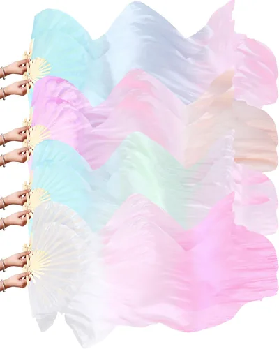 4 colores diferentes y variados: recibirás 4 pares de abanicos de seda en 4 estilos diferentes, con varios colores de morado claro, rosa claro, naranja claro, azul claro, verde claro, para que puedas elegir tu color favorito y combinar con tu ropa de baile Longitud adecuada: el ventilador de danza del vientre mide aproximadamente 70.87 pulgadas de longitud, delicado y ligero, puedes sostenerlo firmemente sin añadir demasiado peso y causar demasiada carga a tu muñeca Fácil de plegar y desplegar: el velo de danza del vientre es conveniente y fácil de plegar o plegar cuando bailas, con aspecto suave y liso, no ocupará demasiado tiempo y energía, para ofrecerte un agradable momento de baile Fiables y útiles: estos fanáticos de baile están hechos principalmente de tela de seda artificial de calidad y hueso de bambú, con tornillos fijos, exquisita y buena textura, confiable y útil, no es fácil de romper o rasgar, para servirte durante mucho tiempo Ocasiones aplicables: estos abanicos largos de baile son fáciles y ligeros para la mayoría de las personas, se pueden aplicar en danza del vientre, Yangge chino, arte popular, baile moderno, ballet, actuación grupal, jazz, baile latino, baile cuadrado, actividades escolares, espectáculos de escenario y mucho más