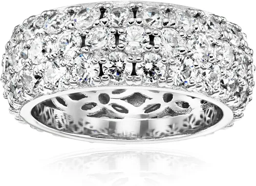 Tienda Essentials Anillo de plata de ley chapada en platino o oro de 3 filas con circonita cúbica redonda de elementos infinitos (anteriormente
