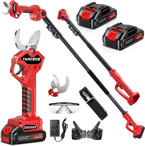 ✅✅【Tijeras de podar y poste extensible retráctil】Las tijeras de podar con poste de 2 en 1 combinan unas tijeras de podar eléctricas y un poste telescópico para proporcionar una herramienta versátil para jardinería. La podadora eléctrica se puede utilizar para trabajos de posición baja, mientras que el poste telescópico se puede utilizar en áreas de alta posición de difícil acceso, que se extiende desde 3.3 pies a 6 pies hasta 12 pies de altura. El poste extensible satisface tus necesidades de poda para ramas altas y te ayuda a ajustar la distancia de poda en cualquier momento. La cabeza está equipada con un botón giratorio de 180°, lo que permite ajustar el ángulo para cortar según la tarea en cuestión. ¡Haz que los trabajos difíciles sean más seguros! 【Motor sin escobillas y batería de gran capacidad】La podadora eléctrica está equipada con un motor sin escobillas de 2 de 2,6000 RPM y 800 W. Las tijeras de podar eléctricas mejoradas con batería tienen una vida útil un 300% más larga y consumen un 50% menos de energía que otras que usan motores de cobre puro con escobillas. Las tijeras eléctricas tienen 2 baterías de litio recargables de 21 V y 2000 mAh, y pueden usarse durante 6-8 horas. ¡Te permiten trabajar al aire libre todo el día sin preocuparte por la batería! (Aviso: si no lo usa durante mucho tiempo, cárguelo una vez cada 2-3 meses para mantener la batería activa) ✅✅【Funcionamiento seguro】El cortador de ramas eléctrico cuenta con un sistema de doble bloqueo para evitar el funcionamiento accidental. Cuando encienda el interruptor de encendido, debe activar la máquina tirando del gatillo dos veces rápidamente (escuchará un sonido de "bip bip bip"), tenga en cuenta que el interruptor de seguridad no se puede activar si tira del gatillo lentamente. Si no se presiona el gatillo durante 60 segundos, la tijera entrará en modo de suspensión automática para evitar cortes accidentales. Al presionar el gatillo dos veces, la cizalla cobra vida. 【Recorte rápido de 0.5s y peso ligero】 Las tijeras de podar inalámbricas Vkdemer están forjadas de acero SK5 de alto carbono que es afilado y antioxidante, voltea el gatillo para obtener un recorte rápido de ramas de 1.2 pulgadas/30 mm a una velocidad de 0.5 segundos, limpio y plano y no daña las ramas. Nuestras tijeras de podar portátiles pesan solo 1.6 libras y están equipadas con un contador LCD digital. Su tamaño compacto, peso ligero, especialmente una gran ayuda para personas con manos lesionadas y manos con artritis. ✅✅【El paquete incluye y servicio】- 1 podadora eléctrica de árboles, 1 poste extensible telescópico, 2 paquetes de baterías, 1 adaptador de corriente, 2 cuchillas, 1 juego de gafas protectoras, 2 correas para los hombros, 1 herramienta a juego, 1 par de guantes, 1 manual. El cuerpo proporciona un servicio de un año (la cuchilla y la batería no están incluidas). Si tienes alguna sugerencia o tienes algún problema durante el uso del producto, no dudes en ponerte en contacto con nosotros.