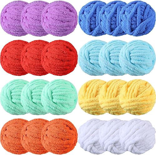 Timgle Paquete de 24 hilos de felpilla gruesa para ganchillo (29 yardas cada madeja), hilo grueso y esponjoso para tejer, hilo de felpilla, hilo