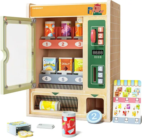 Pregunta sugerida sobre TOP BRIGHT Juego de Máquina Expendedora de Madera, Comida de Juguete para Niños, Juguetes de Juego de Simulación con Barras de Snacks de Madera ¿Este producto sí me sirve para lo que necesito?