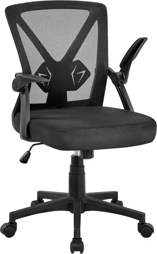 Silla de escritorio de diseño ergonómico: características ergonómicas como el respaldo en forma de S, reposabrazos retráctiles, almohada lumbar movible, así como un rango ajustable de 4 pulgadas de altura del asiento proporcionan comodidad personalizada durante largos períodos de trabajo, estudio u otras actividades. Apoyabrazos abatibles de 90°: ¿Quieres desplazarte tan cerca como al escritorio? Levanta los brazos y obtendrás todos los beneficios de una silla de escritorio sin brazos, incluida una sala de estar más grande, ahorrando espacio en el piso en una habitación pequeña y más. Asiento acolchado y respaldo de malla: esta silla de oficina en casa cuenta con un asiento generoso que mide 19.7 pulgadas de ancho x 19.7 pulgadas de profundidad y está acolchada con espuma de alta densidad, ofreciendo un apoyo sustancial y cómodo y aliviando la fatiga de horas de sentado. Además, el respaldo de altura media envuelto con malla transpirable permite que el aire, el calor corporal y la humedad pasen libremente, lo que te ayuda a mantener una temperatura cómoda. Ajuste simple de la altura del asiento: con la palanca de ajuste, la altura del asiento se puede cambiar fácilmente entre 17.7 y 21.7 pulgadas para adaptarse a diferentes alturas de estación de trabajo, al tiempo que permite que sus pies toquen firmemente el piso cuando están sentados. Esta silla de oficina ergonómica también tiene una función de balanceo para relajarse durante los descansos. Instrucciones claras: Todo el hardware, piezas de conexión y herramientas útiles se proporcionan en el paquete de esta silla de escritorio para computadora. En las instrucciones se muestra una ilustración detallada paso a paso del procedimiento de montaje.